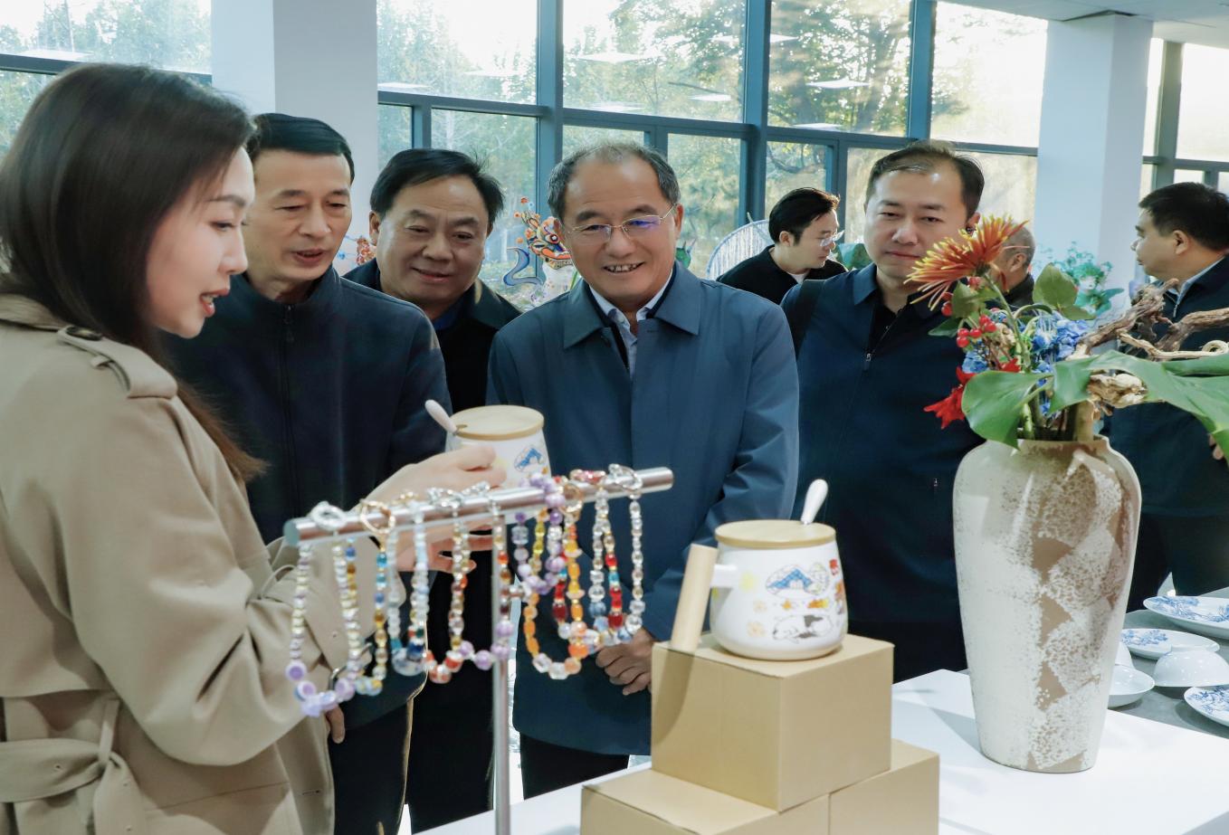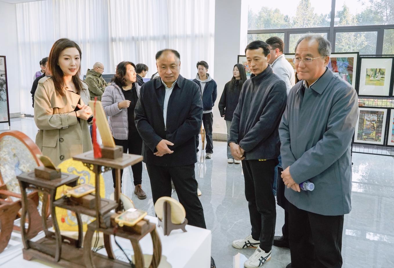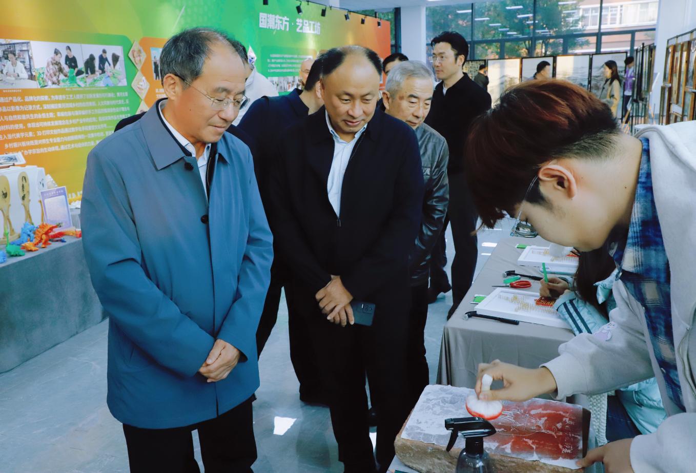 孙科顺对成果展作品的创意表达与实践价值给予高度评价。他表示,这是一场将工匠精神与时代命题深度融合的生动实践,既扎根办学六十五年的艺术教育积淀,又紧扣“新质赋能”“乡村振兴”“国潮崛起”等时代需求,让“育匠人、传匠心”的理念从展品中自然流淌,是一次兼具思想性与实践性的精彩呈现。