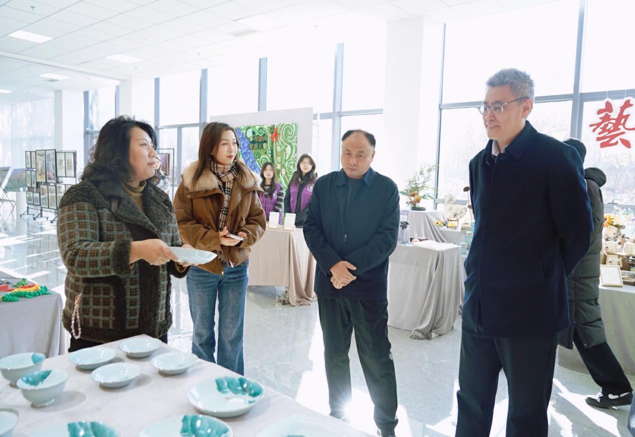 齐飞一行实地考察了我院“新质领航艺强国,六十五载续华章”2025年成果展以及艺术设计系教学实训室,对学院丰硕的教学成果、先进的实践教学设施以及鲜明的办学特色给予了高度评价。他表示,学院紧密结合传媒行业发展需求,构建了完善的实践教学体系,学生在成果展项目实践中展现出的创新思维和扎实技能令人印象深刻,充分体现了学院在应用型人才培养方面的显著成效。