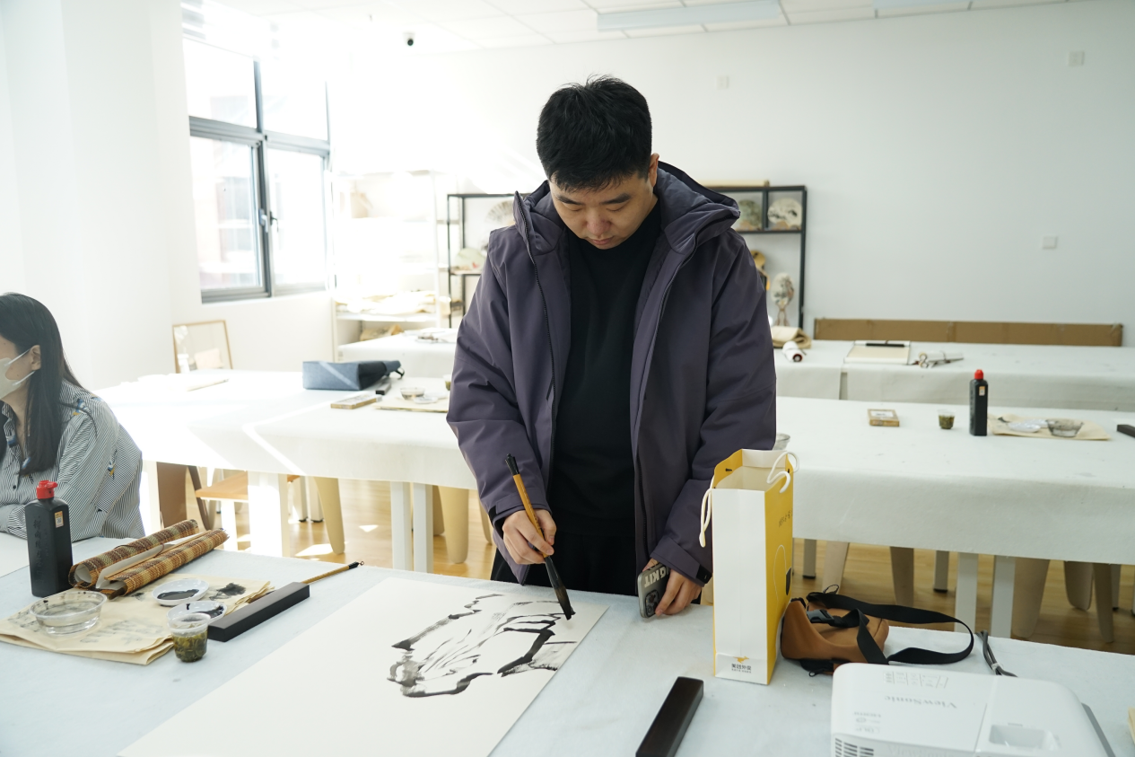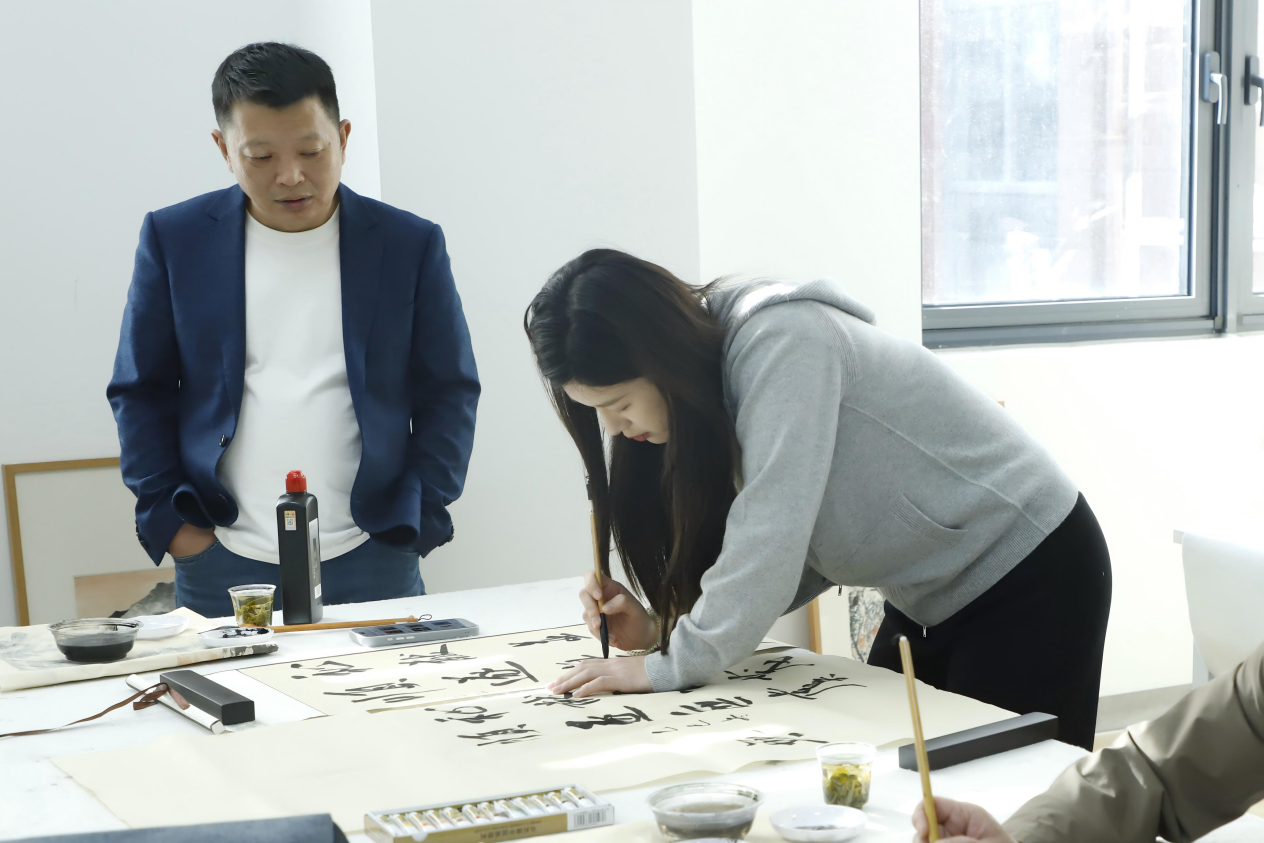 交流活动中,青年艺术家们与学院师生进行了面对面的书画创作交流。艺术家们现场挥毫泼墨,并结合自身创作历程,分享了在艺术理念、技法探索、项目实践等方面的独到见解与心得体会,现场互动热烈。
