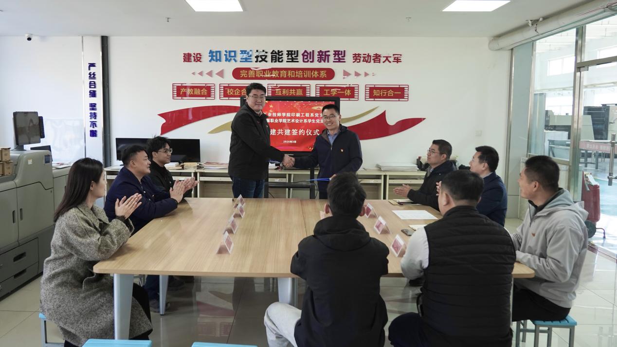 为深化基层党建工作创新,探索“党建+”融合发展模式,推动校际党建共建与教育教学协同发展,3月12日,艺术设计系学生党支部赴山东工业技师学院,与印刷工程系党支部举行党建共建签约仪式,双方正式签署党建共建合作协议,开启协同育人新篇章。