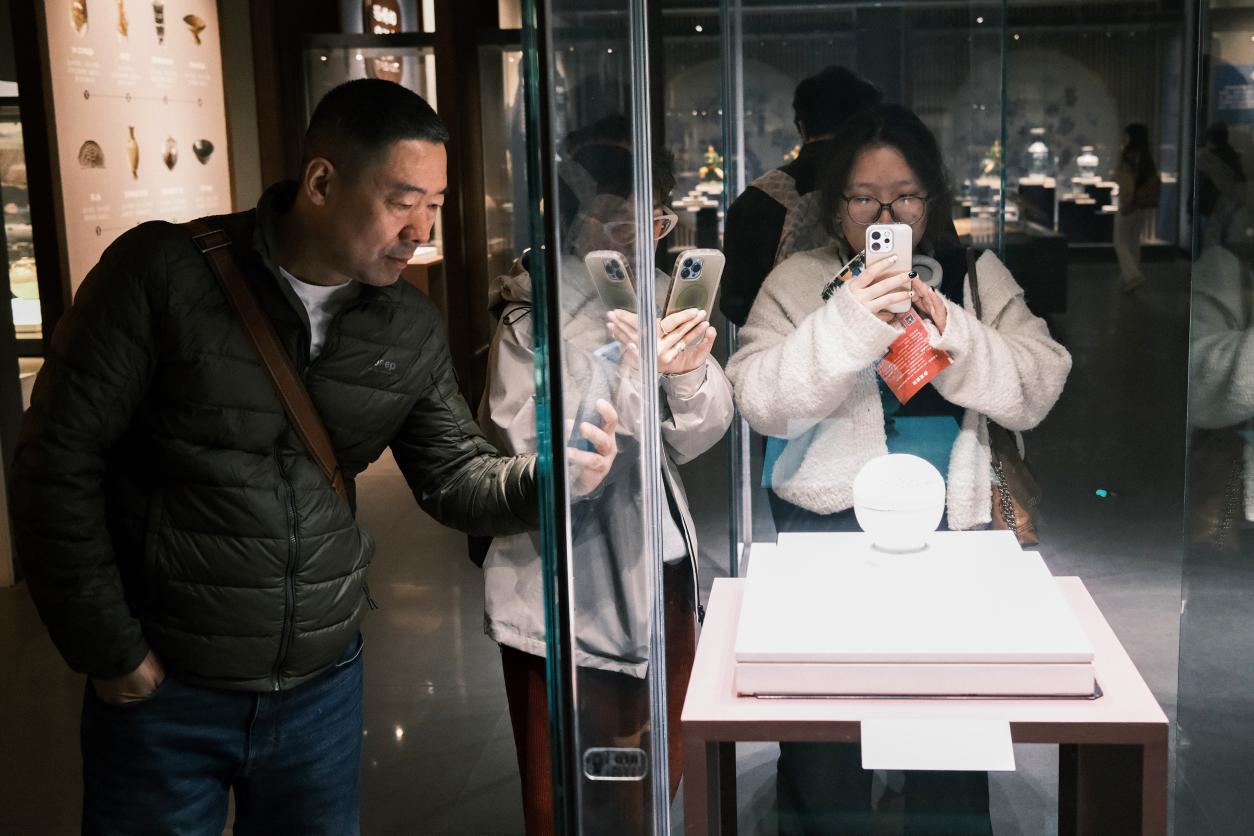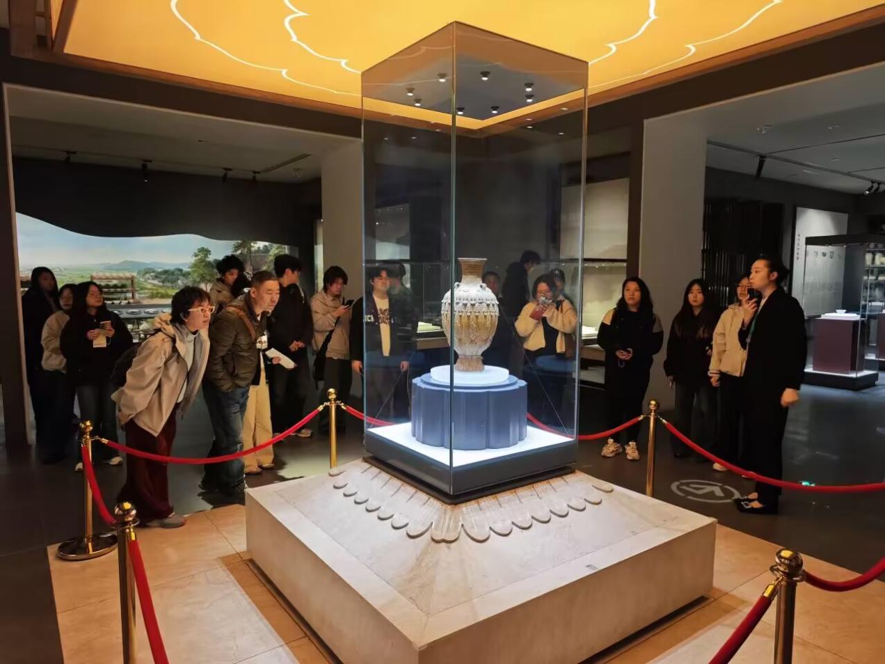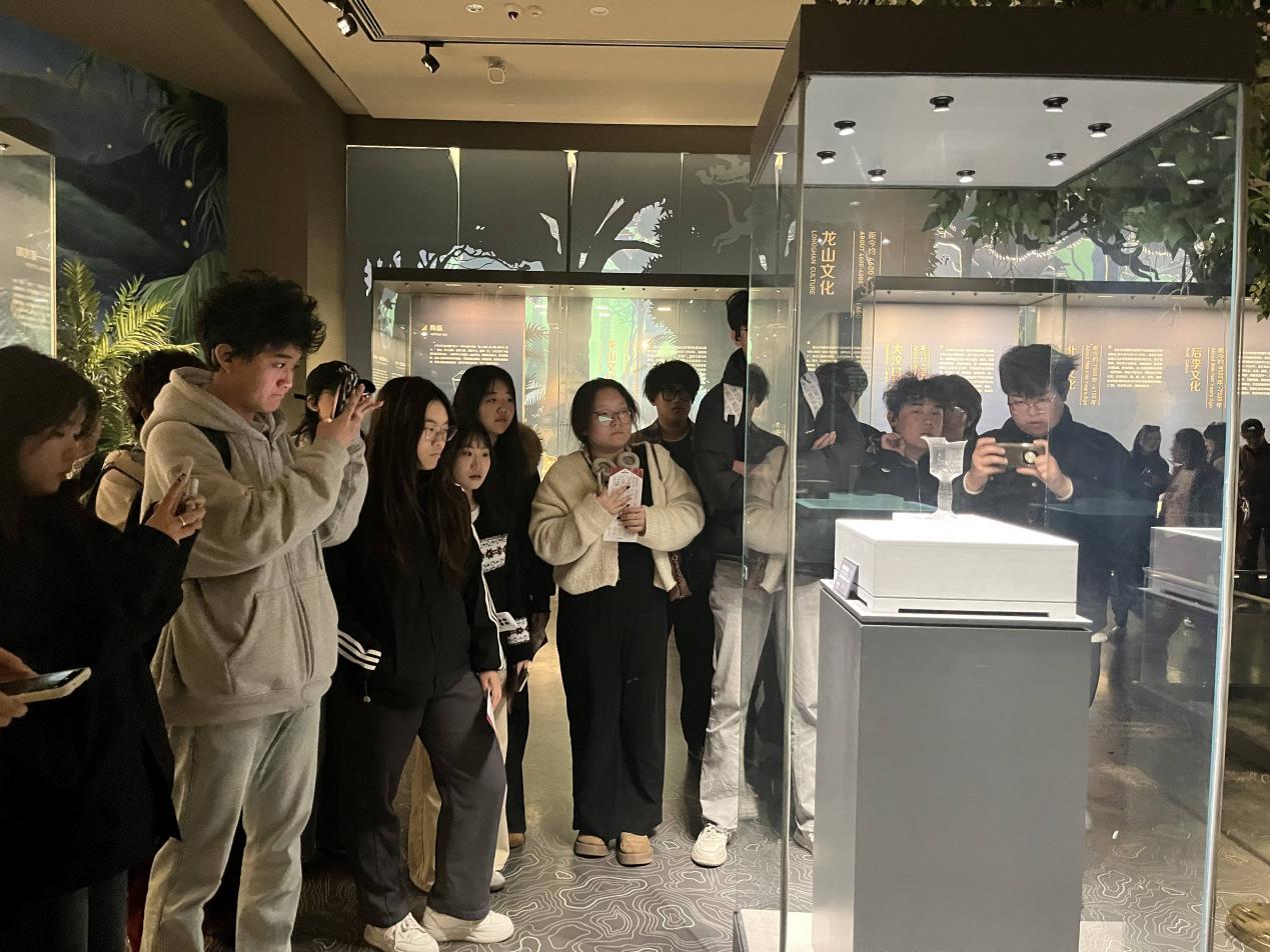 考察期间,师生一行首先来到中国陶瓷琉璃馆。在讲解员的引导下,同学们仔细观摩了不同历史时期的陶瓷器物,深入了解陶瓷烧制技艺的演变脉络及地域文化特色,对传统工艺的传承与创新有了更为直观的认识。