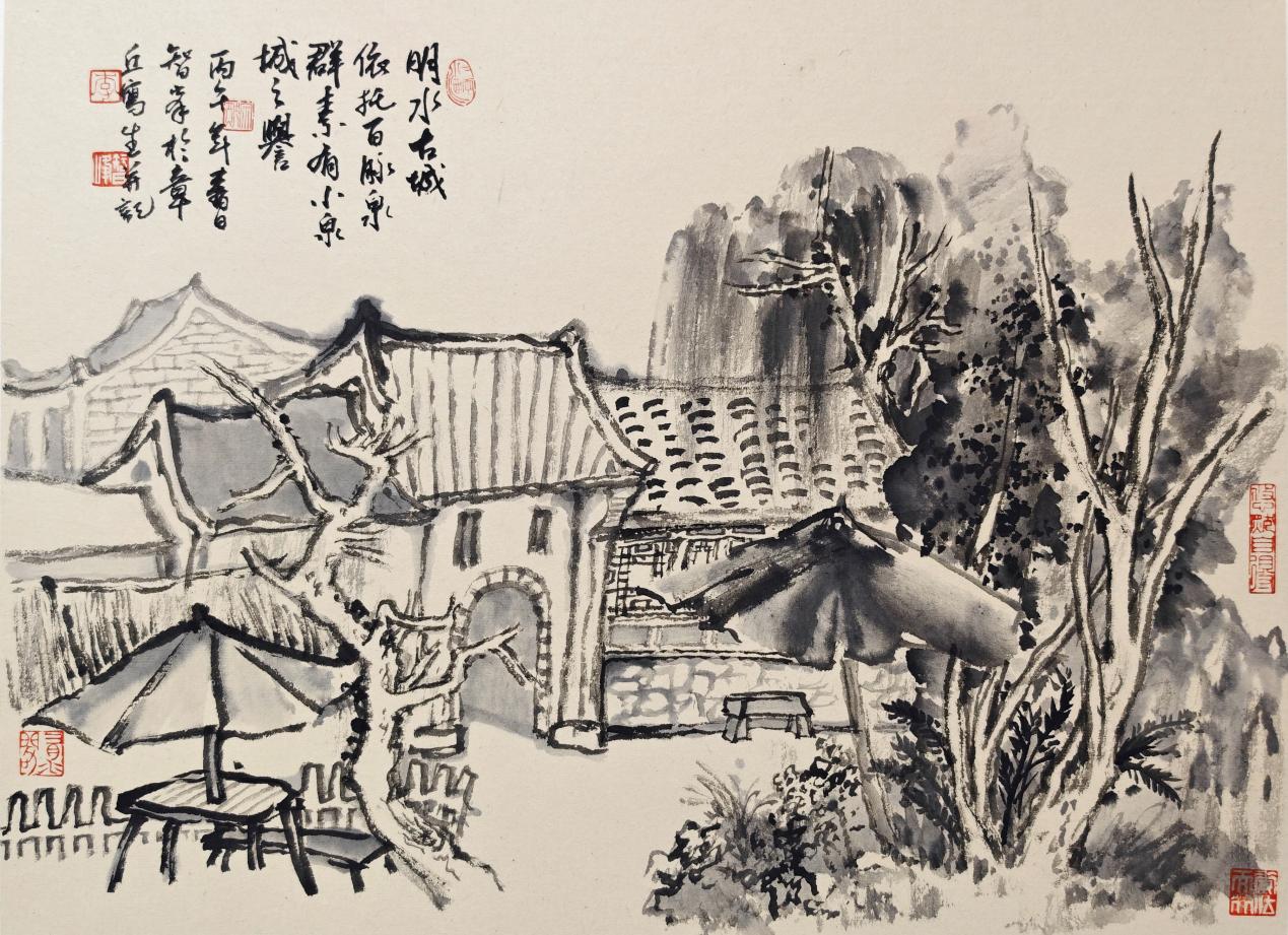 本次写生是陶瓷设计与工艺专业实践教学的重要环节,旨在将中国画写生技法与陶瓷创作审美相结合,引导学生从传统景致中提炼造型语言,提升观察能力、构图能力与艺术表现力,为陶瓷设计积累创作素材。