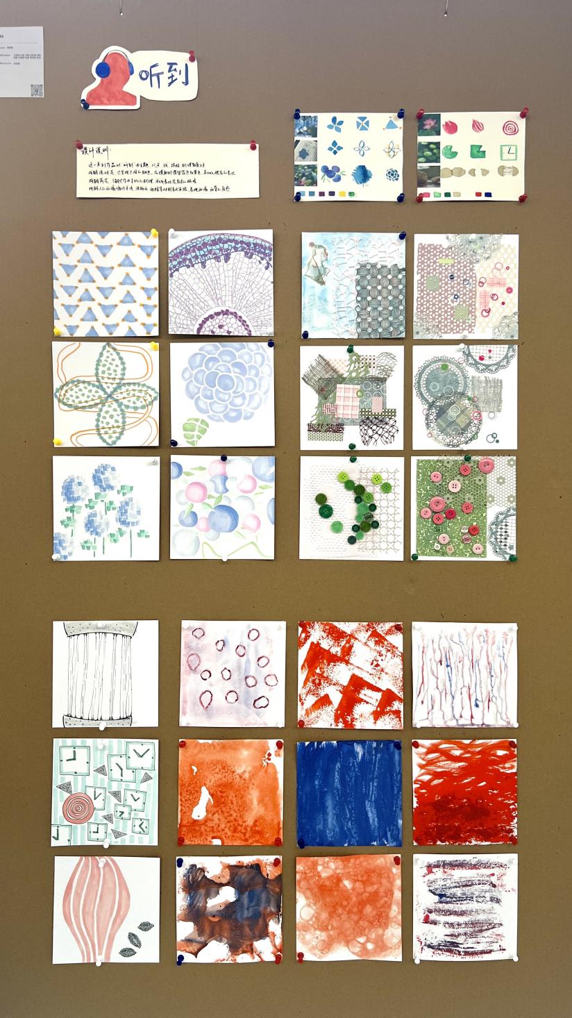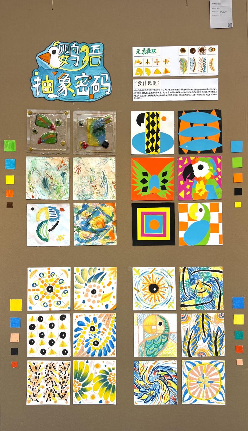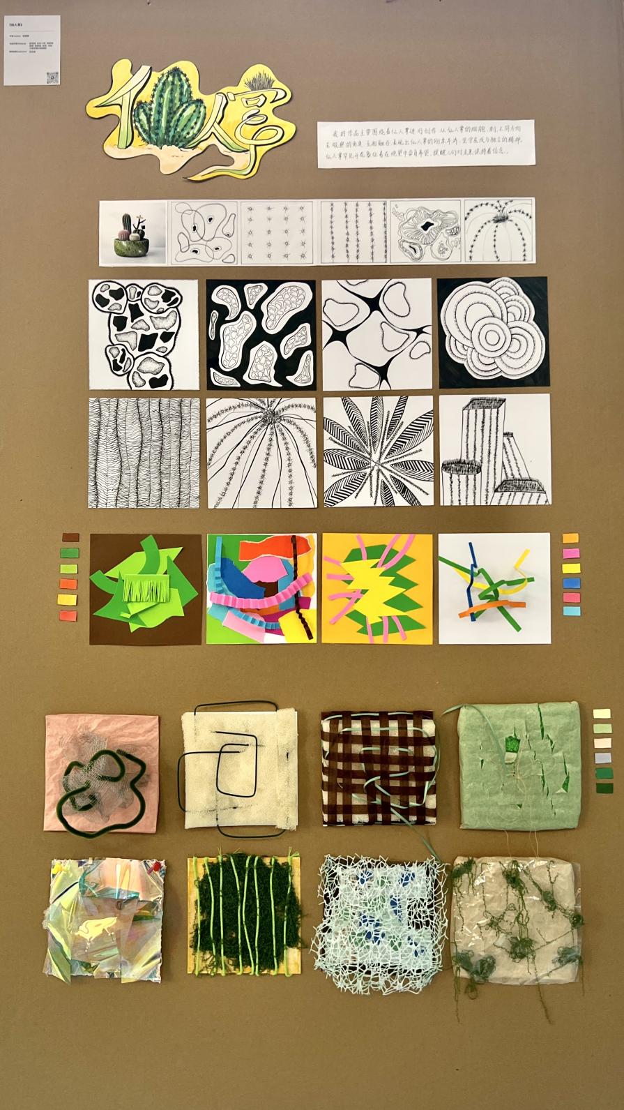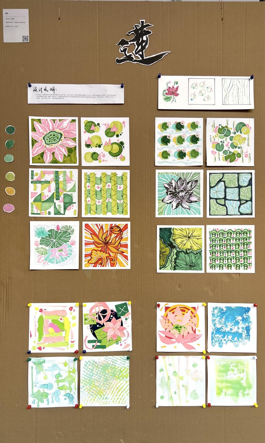 此次展览作为本课程教学的生动缩影,完整呈现了吕沼宣老师在教学中引导学生完成的两次关键思维跨越:从“具象思维”到“抽象思维”的提炼过程,以及从“立体空间”到“二维平面”的视觉转化。通过对点、线、面、色彩、肌理等造型元素的重组与实验,学生将自然与生活中的具体观察,逐步提炼为纯粹的形式语言,实现了从“观看”到“创造”的能力跃升。