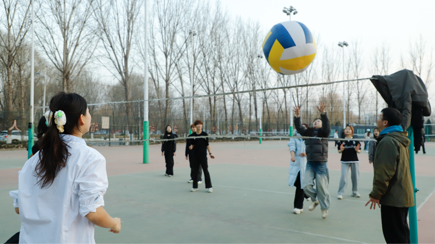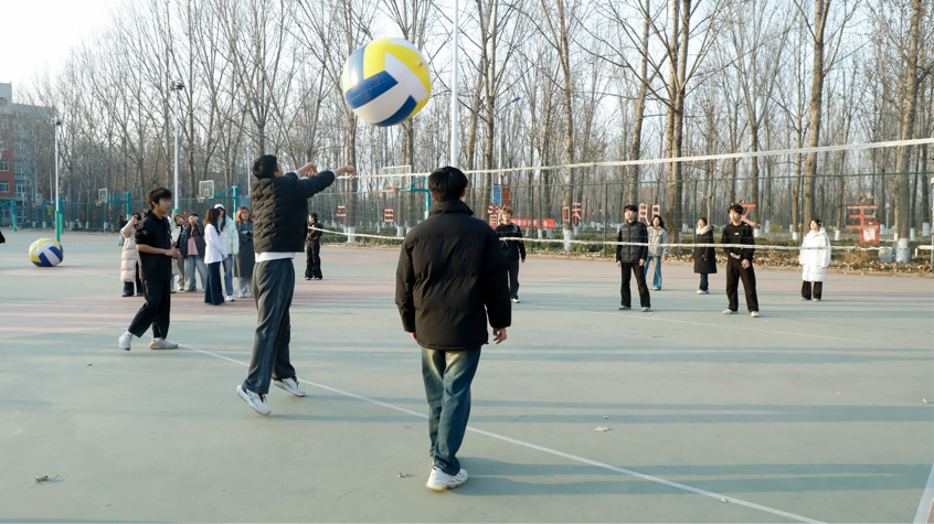 为增强学生身体素质,丰富学生课余生活,营造积极向上的校园氛围,艺术设计系于12月9日在篮球场举办“巨人排球”抱团赛。